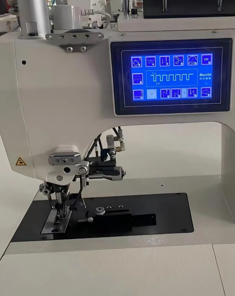 1、配備液晶顯示屏,圖像清晰。操作人員能直觀看到各項參數,如縫紉長度、針數、針距等,快速調整,提高工作效率。