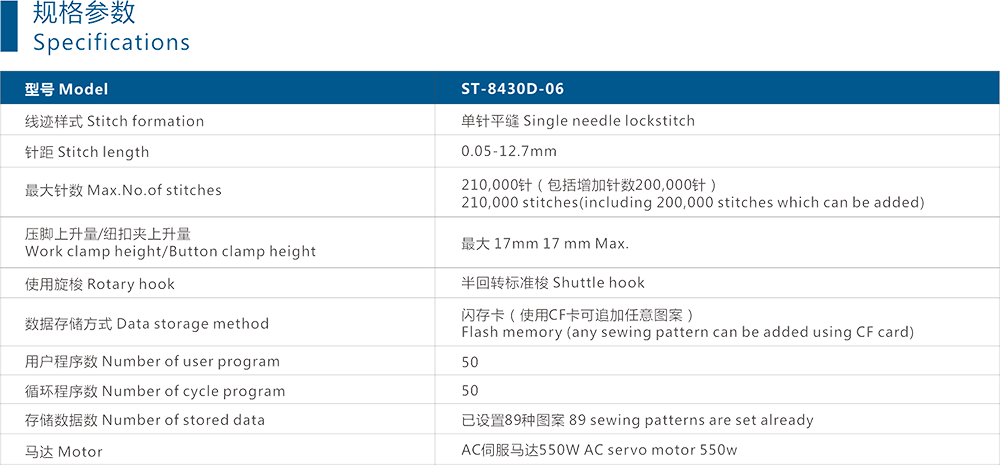 基于ST- 8430D電子套結機基礎上開發的電腦橡筋拼接機,最高轉速達到3200轉每分鐘,讓縫制效率得到極大的提升